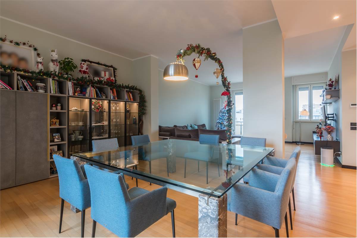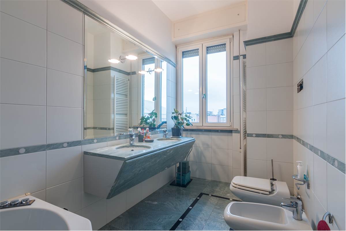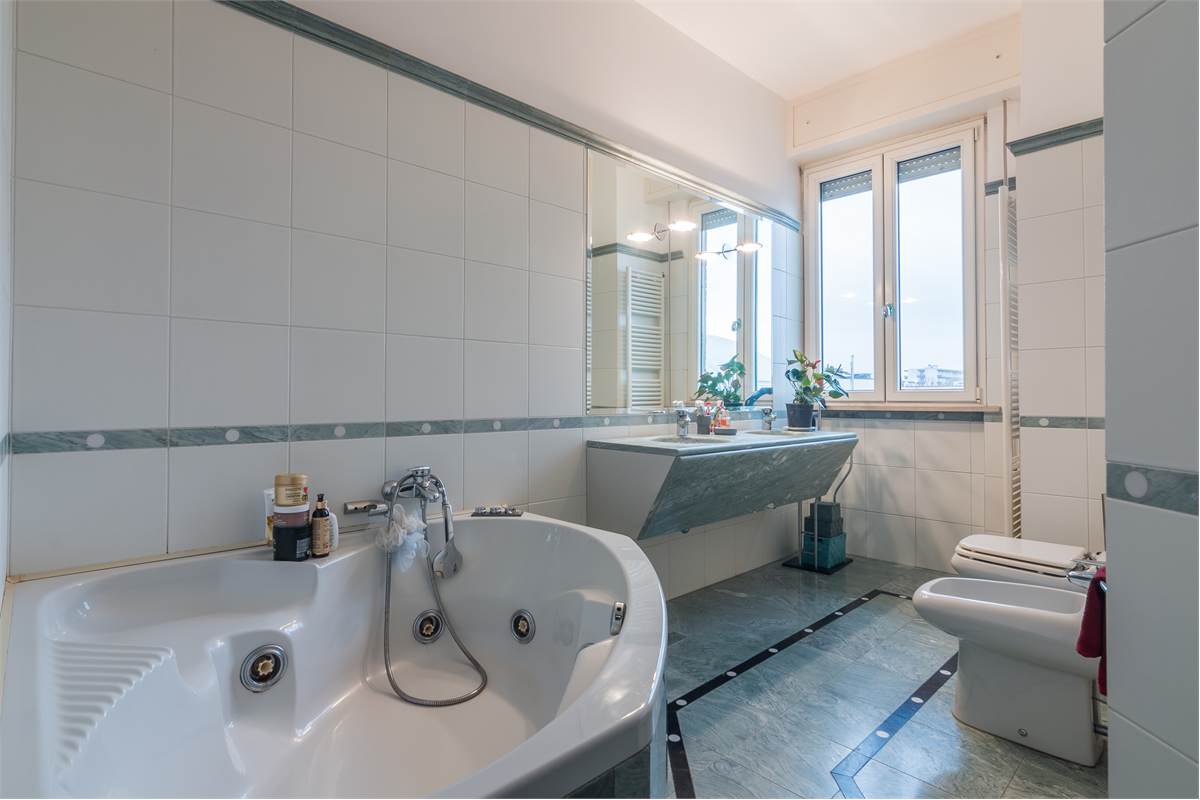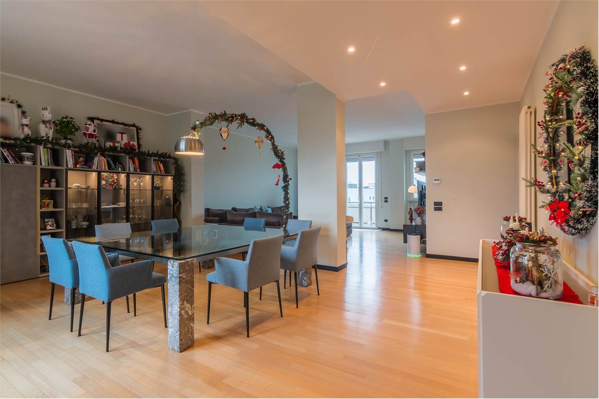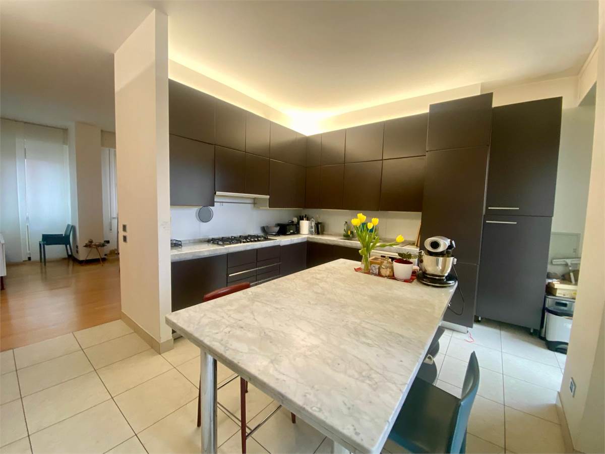 Zona Centro Mare - Proponiamo in vendita esclusivo appartamento ristrutturato nel 2013 ‘pieno piano’ di 270mq. In condominio signorile e ben abitato, servito da ascensore, l’appartamento occupa l’intero piano dell’edificio. Lussuosa e versatile questa proprietà si compone di duplice ingresso. Balconi su tutto il perimetro della casa e porte finestre in tutte le stanze donano agli ambienti tanta luce naturale. Ampi spazi consentono flessibilità e comfort. Infissi ‘super performanti’ (pvc esterno e legno interno) consentono elevato isolamento termico e acustico con ridotto consumo di energia per riscaldare gli ambienti creando un microclima stabile e piacevole tutto l’anno con il risultato di bollette più basse. Alto il livello di sicurezza grazie a questi infissi moderni. La casa si compone di un grande salone con vista aperta su ambo i lati del condominio, si intravede anche il mare! La cucina, separata dal soggiorno, è completa e funzionale, con vista gradevole sempreverde sui giardini delle case di fila confinanti con il condominio. Uno spazio conviviale si trova nella camera attigua alla cucina, attualmente sala da pranzo. Uno studio, una camera matrimoniale e una camera doppia con doppi servizi completano la prima parte della casa, la parte esposta a sud. Dal secondo portone si accede alla parte della casa esposta a ovest composta da altre tre camere e due servizi. Attualmente il quarto bagno è adibito a vano lavanderia. La casa è dotata di 4 balconi e 4 lati liberi con l’esclusività di non avere vicini. Nei balconi sono presenti anche tende automatizzate. Il parquet in faggio in tutta la casa è una scelta di pavimentazione pregiata e resistente, ideale per la sua durezza, stabilità e resistenza all’usura. L’appartamento è dotato di impianti autonomi, (riscaldamento, luce e gas). L’acqua è condominiale contabilizzata a consumo. Classe energetica ‘D’. Completa la proprietà un garage di 25mq all’interno del condominio, dotato di doccia e caldaia per acqua calda. Possibilità di acquistare un secondo garage di 38 mq nel palazzo adiacente. Il fabbricato è stato oggetto di recenti ristrutturazioni di tutti i terrazzi e si presenta in un eccellente stato conservativo. Esclusiva la posizione dell’immobile, vicino al mare e al centro e inserito in un contesto cittadino appena rivisitato quale l’auditorium Scavolini. La Domus Mea Immobiliare su ogni immobile acquisito effettua, tramite un tecnico abilitato, una Due Diligence tecnica che ci permette di conoscere dettagliatamente la situazione urbanistica e catastale di ogni proprietà. Tale Due Diligence potrà essere richiesta dal potenziale acquirente al momento di interesse sulla proprietà. Le presenti informazioni non costituiscono elementi contrattuali. Per informazioni e visite Domus Mea Immobiliare P. le G. Matteotti, 17 Pesaro tel: 0721 1722044 cell:.340 7352205